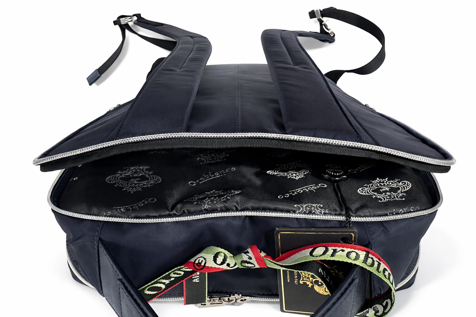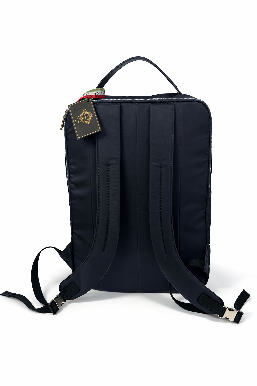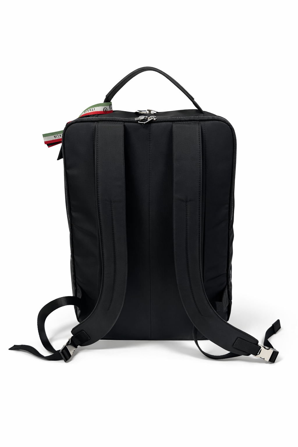 Crafted from high-quality nylon with refined leather trims, this backpack combines Italian craftsmanship with modern functionality.